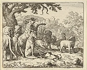 The Ram, Chapelain of the Lion, Gives the Benediction to Renard before His Depature for Rome from Hendrick van Alcmar's Renard The Fox