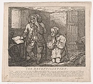 **The Reconciliation (Picturesque Beauties of Bos, Part the Second)** an etching published on June 20, 1786, captures the satirical spirit of late 18th-century British culture. Attributed to literary giants Samuel Johnson and James Boswell alongside artists Samuel Collings and Rowlandson—with Elizabeth Jackson possibly involved in production—this print belongs to a series playfully titled *Picturesque Beauties of Boswell Measuring about 10 by 11 inches, it exemplifies the intimate scale of hand-pulled etchings, ideal for disseminating witty commentary among London's coffeehouse crowds. Etchin...
