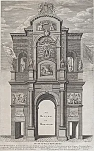 The Return of Monarchy; the first triumphal arch erected for Charles II in his passage through the city of London for his coronation, April 22, 1661