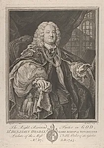The Right Reverend Father in God, Dr. Benjamin Hoadly, Lord Bishop of Winchester, Prelate of the Most Noble Order of the Garter, Aet. 67. A.D. 1743