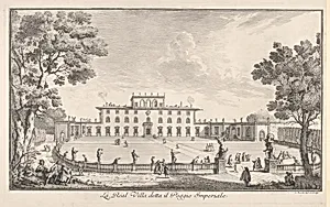 The Royal Villa called il Poggio Imperiale (La Real Villa detta il Poggio Imperiale), view of the facade and balustrade with statuary, from 'Views of the city and other places of Tuscany' (Vedute delle ville e d'altri luoghi della Toscana)