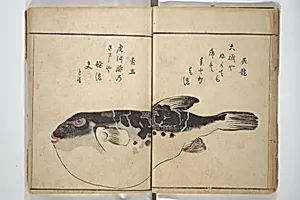 In the vibrant world of Edo-period Japan (1615–1868), Kuwagata Keisai's *The Servants of the Dragon King of the Sea: Fish and Shells* (1802) captures the mesmerizing underwater realm through a woodblock-printed book. Created in early autumn of Kyōwa 2, this ink and color on paper volume measures a compact 9¾ × 6⅞ inches, perfect for intimate study. Keisai, a master of nature illustration, drew inspiration from Japanese folklore, portraying fish and shells as loyal attendants to the Dragon King of the Sea (Ryūjin), a mythical deity ruling ocean depths. This work exemplifies the era's fascinati...