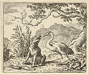 The Stork Removes a Bone from the Wolf's Throat from Hendrick van Alcmar's Renard The Fox