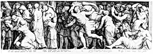 Engraving; first state (inscription of last stanza has been covered with a sheet of paper with the correct stanza inscribed in brown ink)