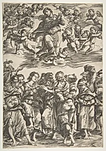 Domenico Campagnola (c. 1500–1564), a Venetian Renaissance painter, engraver, and pioneering draftsman, was born around 1500, likely in Venice to German parents, and became a child prodigy under the tutelage of his adoptive father, Giulio Campagnola. Apprenticed to Giulio around 1507 in Venice, he mastered painting, drawing, engraving, and woodcutting from the esteemed Paduan engraver, whose stipp...