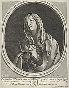 The Virgin in prayer looking up to the left, in an oval frame, after Reni