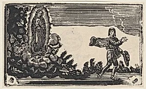 The Virgin of Guadalupe appearing to a man holding a hat