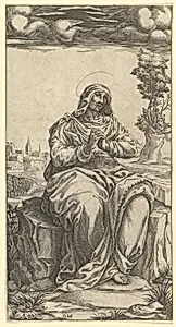 The Virgin of Sorrows; central part of a print with nine surounding compartments, now separated by Giorgio Ghisi