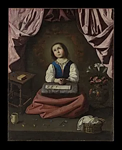 In the hushed glow of Francisco de Zurbarán's *The Young Virgin* (ca. 1632–33), we encounter a tender portrayal of the Virgin Mary as youthful figure, absorbed in sewing while surrounded by lilies—symbols of her purity and innocence. This oil on canvas, measuring 46 x 37 inches, captures the Spanish Baroque master's signature realism, rendering fabrics, skin, and petals with astonishing tactile precision. Acquired by the Metropolitan Museum of Art through the Fletcher Fund in 1927, it exemplifies Zurbarán's devotion to religious themes during Spain's Counter-Reformation era, when art served as...