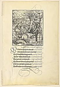 Theuerdarnk on a Boar Hunt, from [Theuerdank] Die geuerlicheiten vnd einsteils der geschichten des loblichen streytparen vnd hochberümbten helds vnd Ritters herr Tewrdannckhs