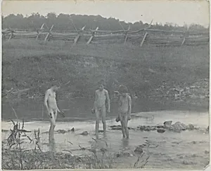 [Three Boys Wading in a Creek]