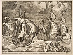 Three Caravels in a Rising Squall with Arion on a Dolphin from The Sailing Vessels