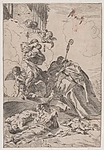 Pietro Testa was born in Lucca in 1612 and, in accordance with the conventions of Italian artistic training, made his way to Rome while still young. There he studied under two of the leading painters of the early seventeenth century: Domenichino, from whom he absorbed a taste for classical restraint and narrative clarity, and Pietro da Cortona, whose more exuberant Baroque manner offered a contras...