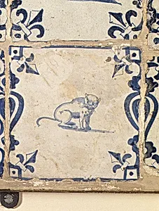 This exquisite Dutch tile panel, dating to around 1620–40, exemplifies the artistry of the Netherlands' Golden Age, when tin-glazed earthenwareknown as Delftware—became a staple of domestic decoration. Crafted from earthenware coated with a tin-opaque glaze, these 5-inch square tiles (assembled here into a 31¾ × 21½-inch panel) feature vibrant animal motifs, a popular theme that brought lively scenes of fauna into everyday homes. The technique allowed for bold colors and intricate designs fired at low temperatures, making them durable yet affordable for the rising middle class. Produced in wo...