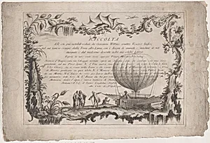 Title plate from 'The collection of the most notable things seen by John Wilkins, erudite English bishop, on his famous trip from the Earth to the Moon... (Raccolta delle cose più notabili Vedute da Giovanni Wilkins erudito Vescove Inglese nel suo famoso viaggio dalla Terra alla Luna...)