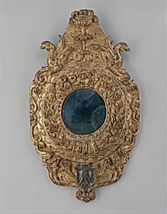 This exquisite *Tondo mirror frame* Siena, Italy, dates to around 1490–1500, a vibrant period when the city thrived as a Renaissance hub known for its intricate decorative arts. Crafted during Siena's transition from Gothic opulence to Renaissance elegance, the frame once encircled a circular (tondo) mirror, a popular luxury item evoking classical antiquity and symbolizing introspection and status among the elite. Made of poplar wood, it masterful carving, gilding, and a deep red-brown bole—a clay ground that creates a luminous, warm undertone beneath the gold leaf. Delicate motifs of birds a...
