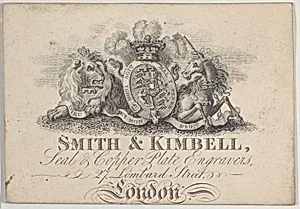 Trade Card for Smith & Kimbell, seal and copper plate engravers