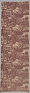 **Traite des Nè (The Slave Trade)**, a striking early 19th-century-printed cotton textile, measures an impressive 101 × inches, designed for use as a decorative hanging or furnishing fabric. Created in French Alsace—a hub of innovative textile production—this piece credits British artist George Morland, for his vivid rural and genre scenes; engraver John Raphael Smith; and local printer Frédéric Etienne Joseph Feldtrappe. imagery, evoking scenes of men, women, animals, and houses, poignantly captures the brutal realities of the transatlantic slave trade, a topic of growing abolitionist fervor...