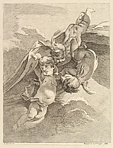 Trois Amours soutenant une draperie (Three Loves Holding a Drapery), from Premier Livre de Groupes d'Enfans (First Book of Groups of Children)