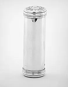 a) H. (w/ cover) 3 1/3 in. (8.5 cm); Diam. 1 1/4 in. (3.2 cm); b) H. 5/16 in. (0.8 cm); Diam. 1 1/4 in. (3.2 cm)