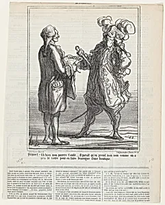 Step into the sharp-witted world of 19th-century French satire with Honoré Daum lithograph *Turgot: –Eh, well, my poor, it appears that they my name as they have yours for the sake of the sign of a shop published in *Le Charari* on October , 1867. Daumier, a master caricaturist and key figure in Realism, produced thousands of such prints for this influential satirical newspaper, using his bold, expressive style to skewer politicians, society, and the bourgeoisie during France's Second Empire. This second-state lithograph on newsprint captures a humorous dialogue between historical figure Anne...