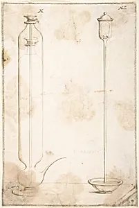 Step into the dawn of modern science with this intriguing 17th-century drawing *Two Glass Containers for Scientific with Liquids*, created anonymously in 1666 as an illustration for *Saggi di naturali esperienze ("Essays on Natural Experiments a seminal Italian text exploring natural philosophy through hands-on trials. Amid the Scientific Revolution, when figures like Galileo and Boyle were pioneering empirical methods, these precise depictions of laboratory glassware—likely used for observing liquid behaviors—captured the era's fascination with controlled experimentation. Housed in the Metrop...