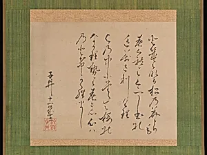 Created in 1734 during Japan's Edo period (1615–1868), this hanging scroll by Ike Taiga (1723–1776) elegantly captures *Two Poems from the Collection of Ancient Modern Poems (Kokinashū)*. Rendered in ink on paper, the work measures 10½ × 13⅛ inches at its core image, designed for vertical display in intimate like a scholar's studio. As a master of the N (Southern School) style literati painting tradition inspired by Chinese models—Taiga infused his with poetic grace, blending calligraphy and subtle imagery. The *Kokin wakashū*, Japan's first imperial anthology of waka poetry compiled in the 1...