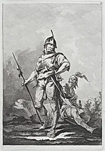 Two Soldiers, One Standing Holding a Lance, One Seated