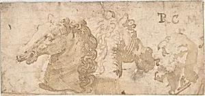 Two Views of a Horse's Head; the Head of a Bearded Man in Profile