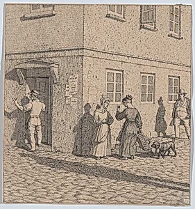Two women conversing on a street corner, from "Linear Perspective, Applied to the Art of Painting"