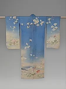 浅葱絽地鯉睡蓮朝顔模様単衣|Unlined Summer Kimono (Hito-e) with Carp, Water Lilies, and Morning Glories