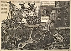 Various Lamps and a vase encusted with cameos, from Vasi, candelabri, cippi, sarcofagi, tripodi, lucerne, ed ornamenti antichi disegnati ed incisi dal Cav. Gio. Batt. Piranesi (Vases, candelabra, grave stones, sarcophagi, tripods, lamps and ornaments designed and etched by Cavaliere Giovanni Battista Piranesi)