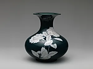 Porcelain covered with a dark green glaze and design in white enamel (Kyoto ware)