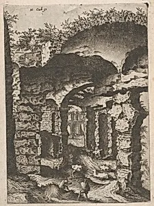 Hieronymus Cock, born Hieronymus Wellens de Cock in Antwerp in 1518, emerged from a distinguished artistic lineage; his father, Jan Wellens de Cock, and brother, Matthys Cock, were both accomplished painters and draftsmen. Admitted as a master painter to Antwerp's Guild of Saint Luke in 1545, he honed his skills in the vibrant Netherlandish tradition before traveling to Rome from 1546 to 1547, whe...