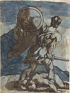 Venus and Cupid in a Landscape, after Annibale Carracci (recto); A Warrior Holding a Shield and Sword, Seen from the Back (verso)