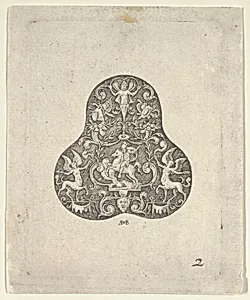 Vertical Panel with a Pear Shaped Design with a Mounted Soldier and Centaurs