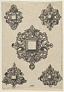 In the late 16th century, Flemish engraver Abraham de Bruyn created *Vertical Panel with Designs for Mirrors* (ca. 1580–1600), a delicate engraving measuring just 4 9/16 × 3 1/4 inches. This compact sheet showcases intricate ornamental designs for mirror frames, arranged vertically in a single panel. Deyn, active in Antwerp during the Northern Renaissance, specialized in such prints that served as pattern books for craftsmen, blending elegant strapwork, foliage, and grotesque motifs popular in Mannerist decoration. Engravings like this were revolutionary for their time, enabling the precise r...