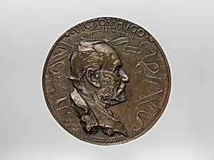 This exquisite cast bronze medal, titled *Victor Hugo (18021885)*, was crafted in 1884 by the French artist Jean-Désiré Ringel d'Ill. Measuring just 6 5/8 inches in, it captures the revered writer's profile in a classical style typical of 19th-century plaquettes—small, sculptural reliefs prized for their intimate portraiture and commemorative power. Housed in the Metropolitan Museum of Art's European Sculpture and Decorative Arts department, piece exemplifies the medal's role as a portable tribute to cultural icons. Victor Hugo, the towering figure of French Romanticism and author of masterpi...