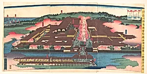 This vibrant triptych woodblock by Utagawa Yosha captures the bustling Miyozaki Brothel District Yokohama, Kanagawa during the 4th month of 1864. A master of the Utagawa school, Yoshitor specialized in ukiyo-e—"pictures of the floating world"—icting scenes of everyday life, entertainment, and urban pleasures in late Edo-period Japan (1615–1868). Printed with ink and color on paper, the three sheets (each around 14½ x 9¾ inches) combine to form a panoramic view, a technique that allowed artists to unfold expansive narratives across multiple panels. Created just five years after Yokohama opened...