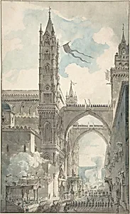 View of the Portal and Principal Entrance of the Cathedral of Palermo during the Festival of Sta. Rosalia