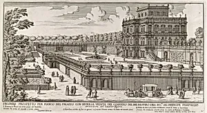 View of the side facade of the Palazzo Pamphili and its garden (Secondo prospetto per fianco del palazzo con diversa veduta del giardino del Bel respiro...Pamphilio)