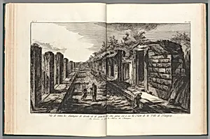 View opposite the entrance gate of all of the shops to the right and left of the street of the City of Pompeii, from "Antiquités de Pompeïa, tome premier, Antiquités de la Grande Grèce..." (Antiquities of Pompeii, volume one, Antiquities of Great Greece...), volume 1, plate 13