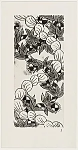 **Vines from *The Joy of Ornament Robert Kushner, 1980 Etching, aquatint, and drypoint on wove Arches paper Step into the lush world of Robert Kushner's *Vines*, a captivating print from the 1980 portfolio *The Joy of Ornament This delicate etching, aquatint, and dry—measuring just 22.5 x 10.2 cm on its plate—captures twisting vines in a celebration of organic exuberance. Kushner, a leading figure in the Pattern and Decoration movement of the late 1970s and 1980s, championed ornamental beauty at a time when modernist austerity dominated art. His work rebelled against minimalism, embracing vibrant patterns inspired by nature, textiles, and global crafts to reclaim decoration as high art. The techniques shine here: etching carves precise lines into a metal plate, aquatint adds rich tonal washes for depth and texture, and drypoint's direct burr creates soft, velvety strokes that evoke the vine's tender growth. Printed on premium wove Arches paper, this piece is one of 17 etchings/aquatints and three drypoints in the full portfolio, gifted to the National Gallery of Art by Kathan Brown. *Vines* invites visitors to revel in the joy of intricate detail, reminding us that ornament isn't mere embellishment—it's a profound expression of life's abundance.