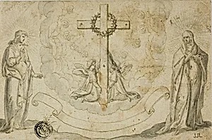 Virgin Mary and St. John the Evangelist Beholding a Vision of the Cross Held by Two Angels