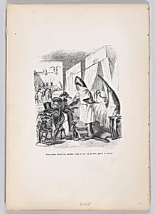 This witty wood engraving, titled *"We are going to incise the muscles, saw the, in a word, the sick,"* comes from the satirical book *Scenes from the Private and Public of Animals* (ca. 1842), featuring text by literary giant Honoré de Balzac illustrations by visionary caricaturist J.J Grandville. Created during France's July Monarchy, the work exemplifies the era's booming tradition of anthropomorphic satire, where animals mimic human follies to critique society. Here, pompous animal surgeons prepare to "heal" a patient with comically brutal enthusiasm, poking fun at the often gruesome medic...
