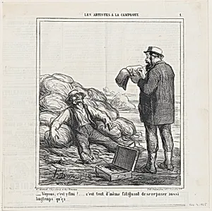 Well, are you finally finished?... after all, it's tiring to relax for such a long time, from 'The countryside artists,' published in Le Charivari, February 2, 1865
