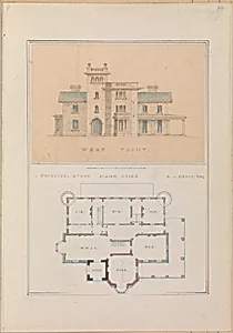 West Front and Principal Floor Plan of John Munn House, Utica, New York