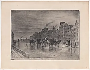 Félix-Hilaire Buhot was born on July 9, 1847, in Valognes, a small town in Normandy, France, into a modest family—his father a wine merchant and his mother a seller of women's clothes. Orphaned by age seven after losing both parents and his maternal grandmother, he was raised by relatives, including a godfather, and received an early introduction to drawing from his adopted mother's nephew. In 186...