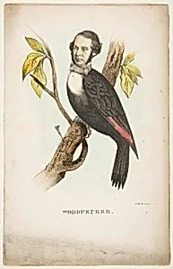 Step into the whimsical world of 19th American satire with *Woodpecker (William. Gihon)*, a vibrant color lithograph with watercolor and gum from 1851. Created by Robinson, Henry Louis Stephens, and Rosenthal as part of *The Comic Natural History of the Human Race this print belongs to a humorous series that playfully anthropomorphizes notable figures, reimagining them as birds and beasts. Measuring just 11 3/16 x 7 3/16 inches, it's a gem in the Metropolitan Museum of Art Drawings and Prints collection, gifted by Lincoln Kirstein in 1964. At its heart, the artwork skewers William B. Gihon—li...