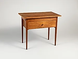 This elegant Work Table, crafted by members of the United Society ofievers in Christ’s Secondaring—better known as the Shakersbetween 1820 and 1850, exemplifies the pinnacle of Shaker furniture design. from a harmonious blend of woods including walnut, cherry butternut, pine, basswood, it measures compact 25 x ⅛ x 18⅛ inches, perfect for practical use in communal Shaker villages. Its clean lines and subtle proportions reflect the Shakers' commitment to utility without excess, a hallmark of craftsmanship. The Shakers, a celibate sect founded in 18th-century England and flourishing in the northeastern U.S., believed that all work should be an act of worship. Their furniture avoided decoration, favoring honest materials and precise joinery to create objects of enduring beauty and function. This table, likely used for sewing, writing, or domestic tasks, embodies their motto "Hands to work, hearts to God," prioritizing simplicity and perfection in everyday life. Housed in The Metropolitan Museum of Art’s American Wing, this piece highlights Shaker contributions to American decorative arts during a period of rapid industrialization. Acquired through the Friends of the American Wing Fund in 1966, it invites visitors to appreciate how spiritual ideals shaped functional design, influencing modern minimalism.